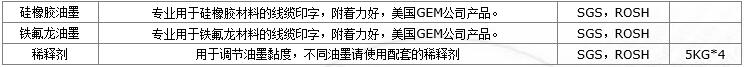 “華邦”電線電纜標印油墨 華邦電線電纜標印油墨,專供電線電纜行業,塑膠管材行業,塑料線,橡膠線,硅膠線,鐵氟龍線,尼龍線使用。該產品具有色彩鮮艷,光澤良好,防老化,抗紫外線,干燥速度快,穩定性好等特點。標印字跡清晰美觀,耐磨性好。華邦油墨系列產品具有SGS報告,符合ROHS指令,達到SONY標準,超過IEC標準。